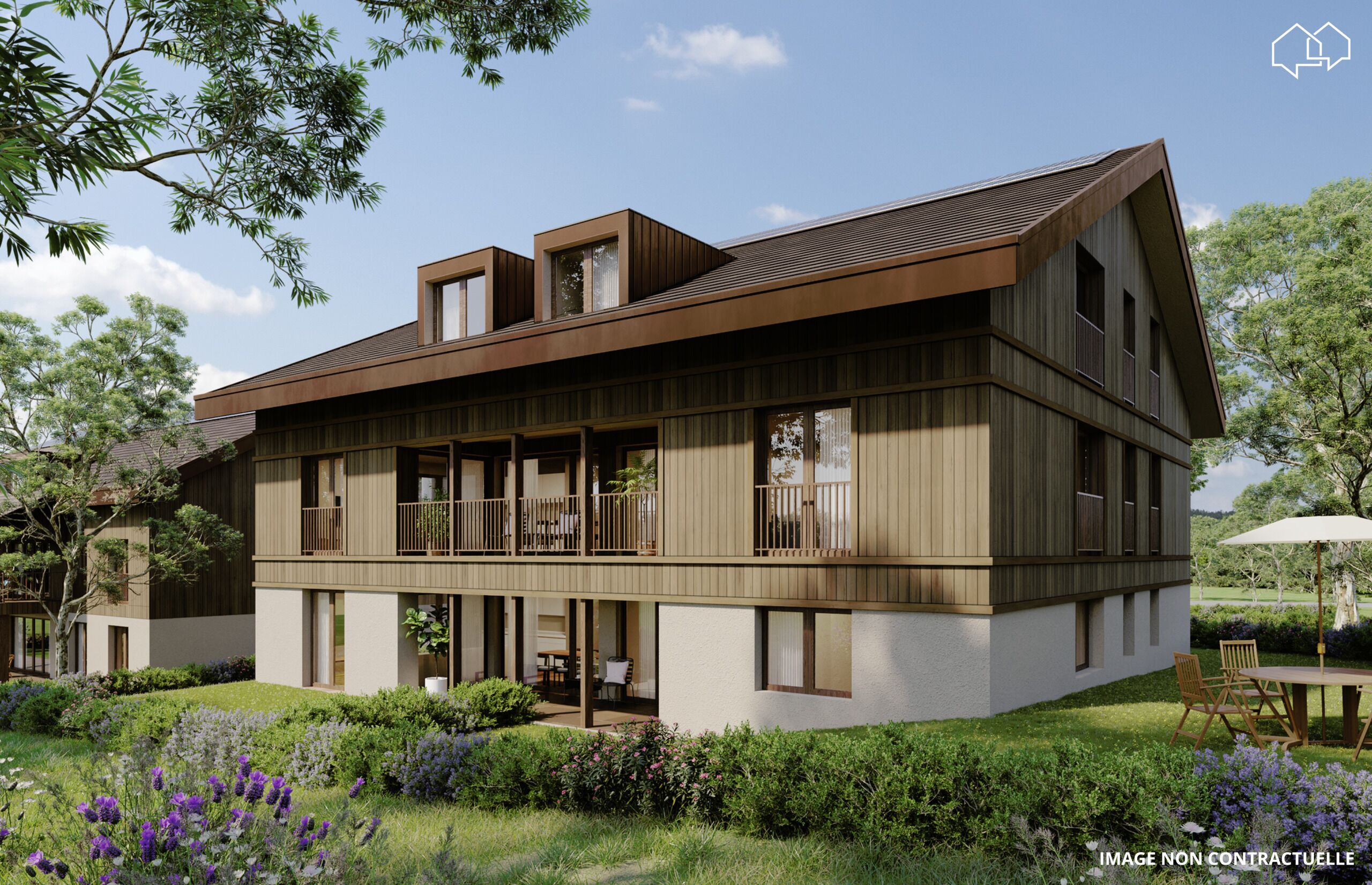 L’architecture s’intègre parfaitement à l’environnement et au côté authentique de cette belle région. Les appartements offrent des prestations modernes et le choix des matériaux est accordé aux futurs propriétaires. Le bâtiment répond aux exigences énergétiques actuelles.