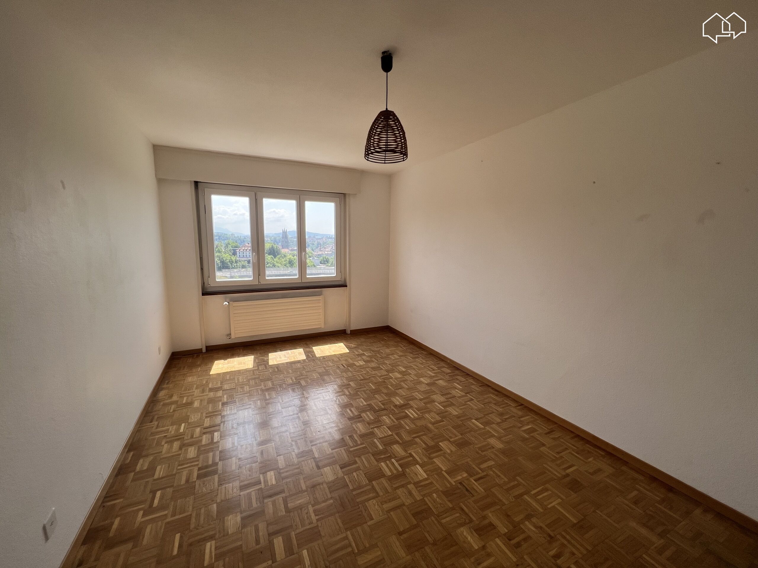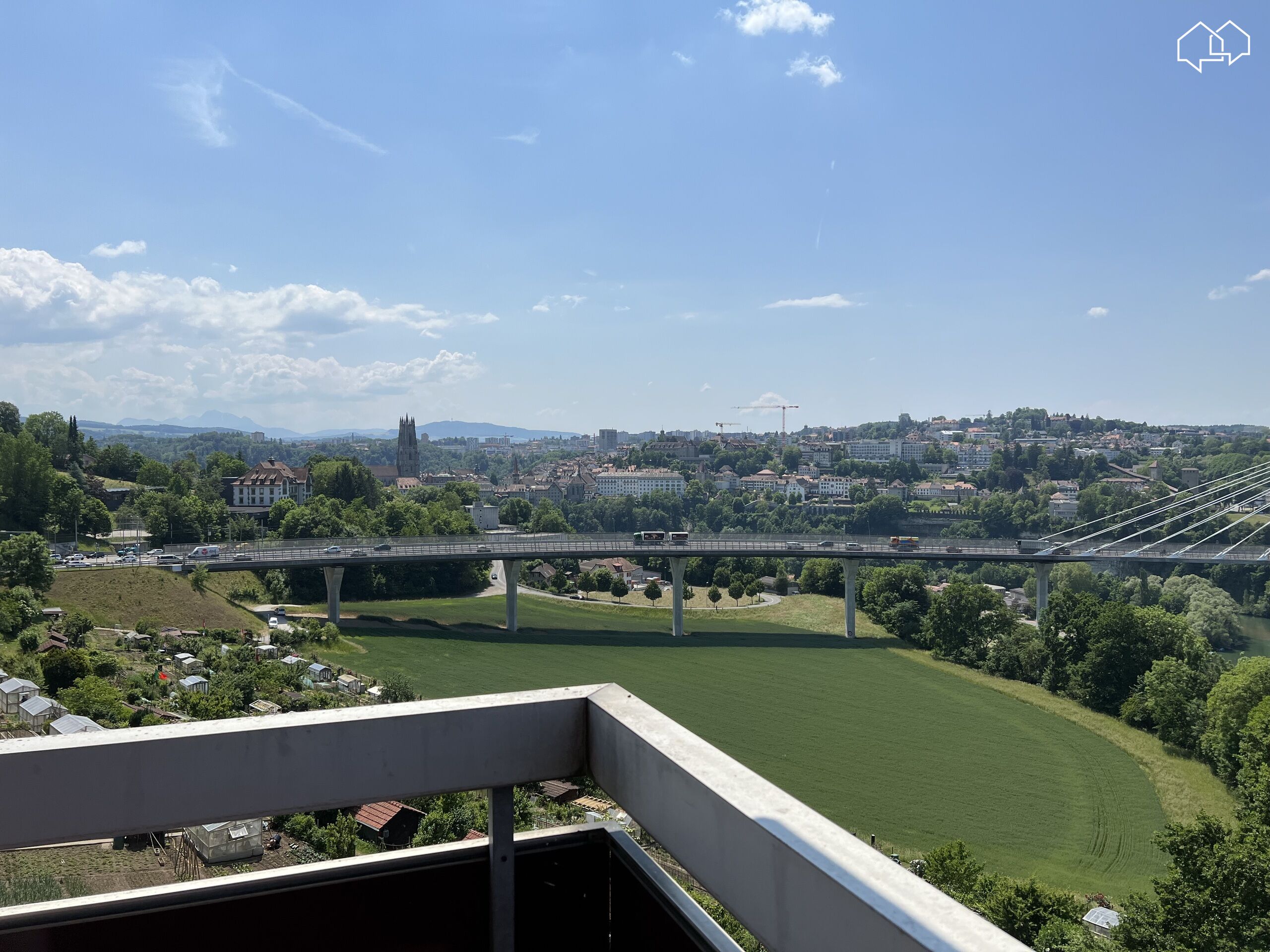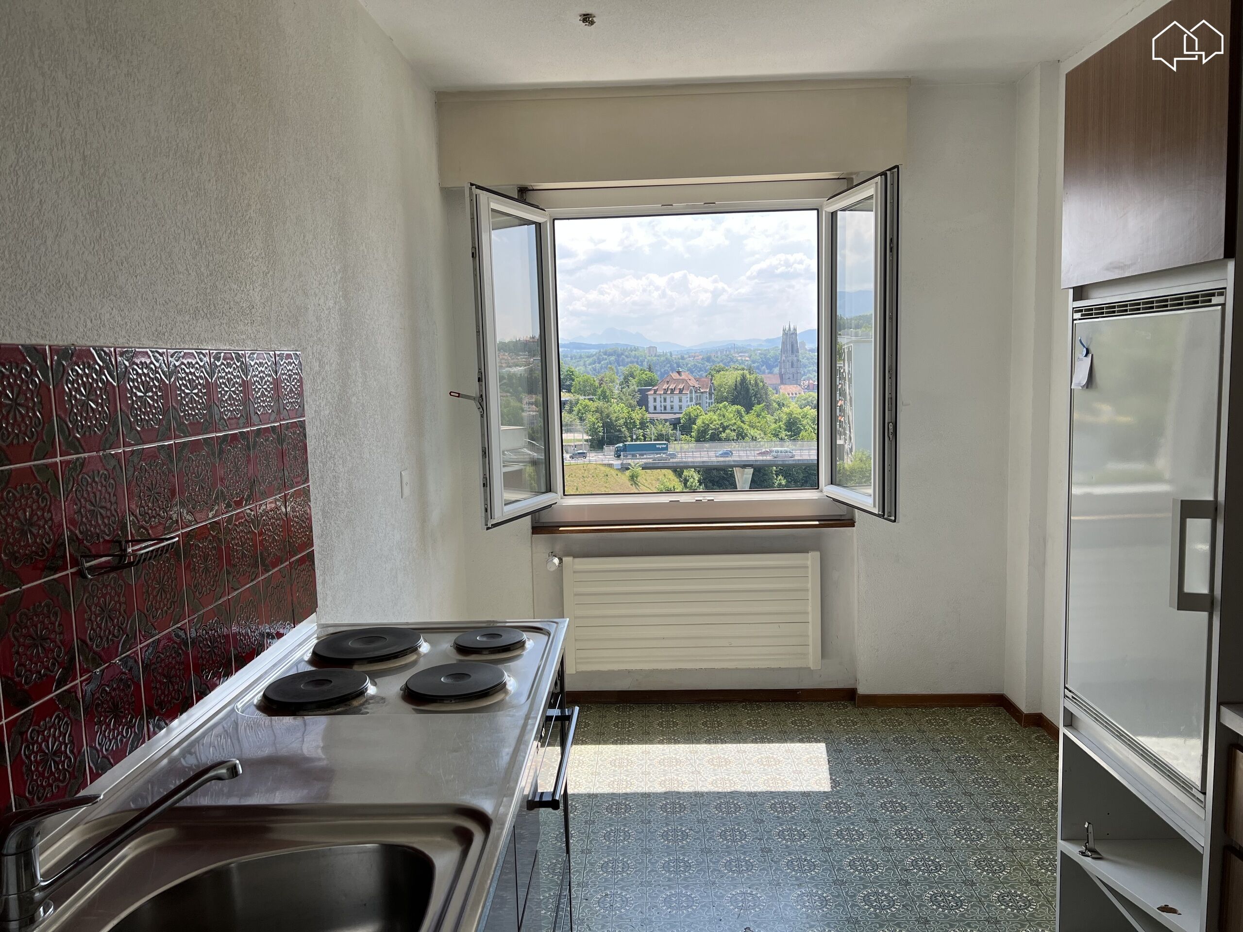 Ce logement bénéficie d'un séjour, d'une cuisine habitable et de 3 chambres. Les sanitaires sont composés d'une salle de bain et d'un wc séparé. Cet appartement nécessite un rafraîchissement ou une rénovation. Sa situation dominante lui offre une vue à couper le souffle sur la ville de Fribourg et un ensoleillement durant toute la journée grâce à son orientation sud-ouest.