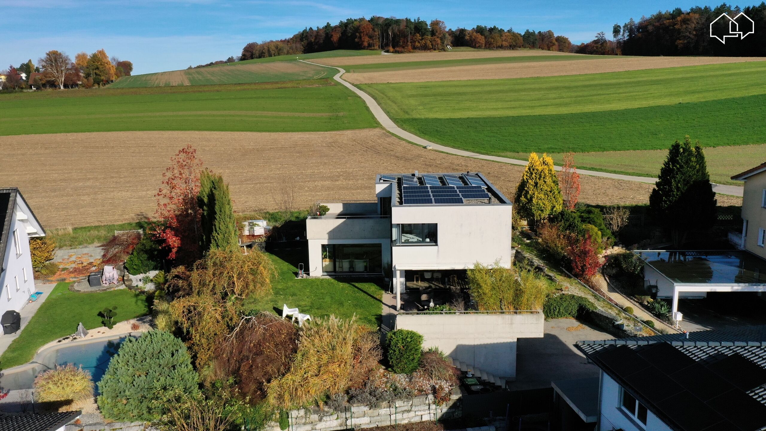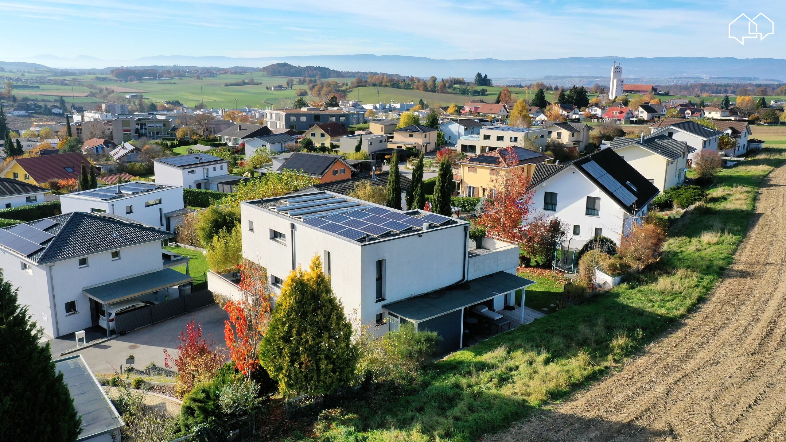 Située à Courtepin, dans un quartier résidentiel et bénéficiant d'une position dominante, cette villa contemporaine de 5.5pces a été construite en 2011.