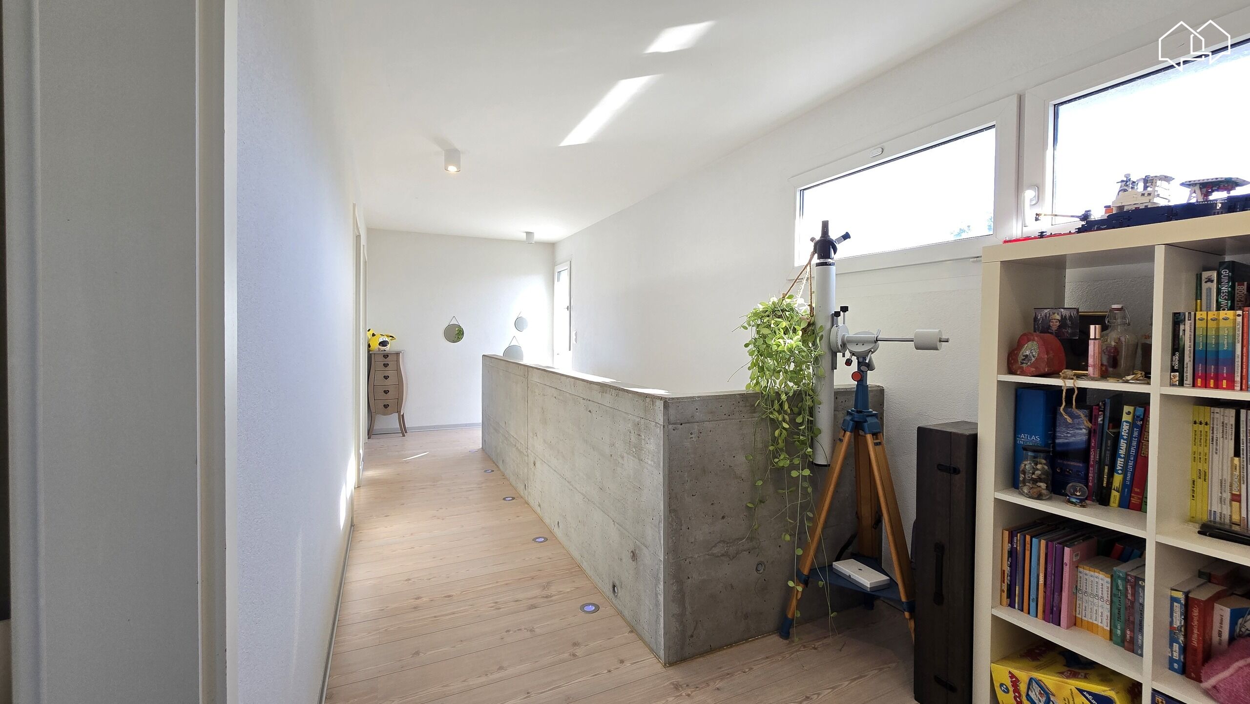 Résolument contemporaine, avec son béton apparent allié aux bois qui apporte la touche chaleureuse, cette maison offre une magnifique pièce de vie lumineuse de plus de 60m² et idéalement répartie. La terrasse et le jardin orientés sud-ouest offrent un panorama dégagé sur les champs avoisinants et une intimité recherchée. L'étage compte 3 chambres et 2 salles de bains.